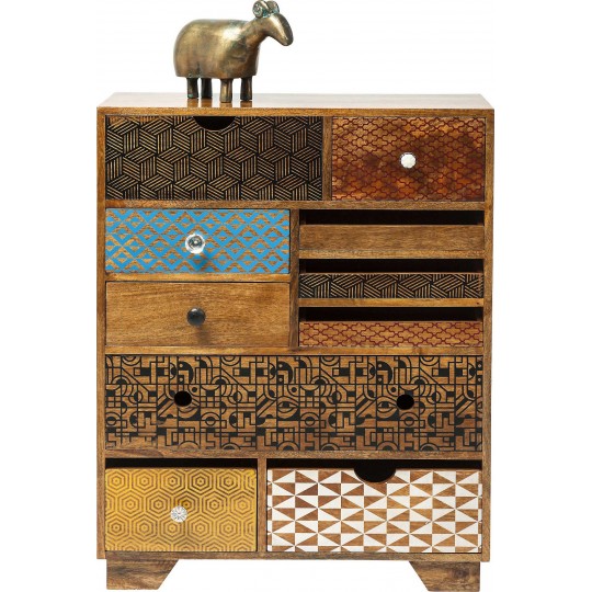 With its summer colours and mismatched drawers, this chest of drawers will make your room warm and original. Its drawers of various sizes allow you to store your belongings in categories. The gentleman's ties and the lady's tights will finally be able to live together.