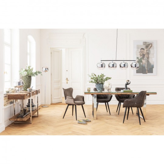 Aço lacado de cromado, vidro colorido; Comprimento do fio 150cm; Medidas do abajour:20x25x25cm; Medida do copo: 2,50x30x8cm; Ajustável em altura; Fio revestido; Artigo entregue desmontado;